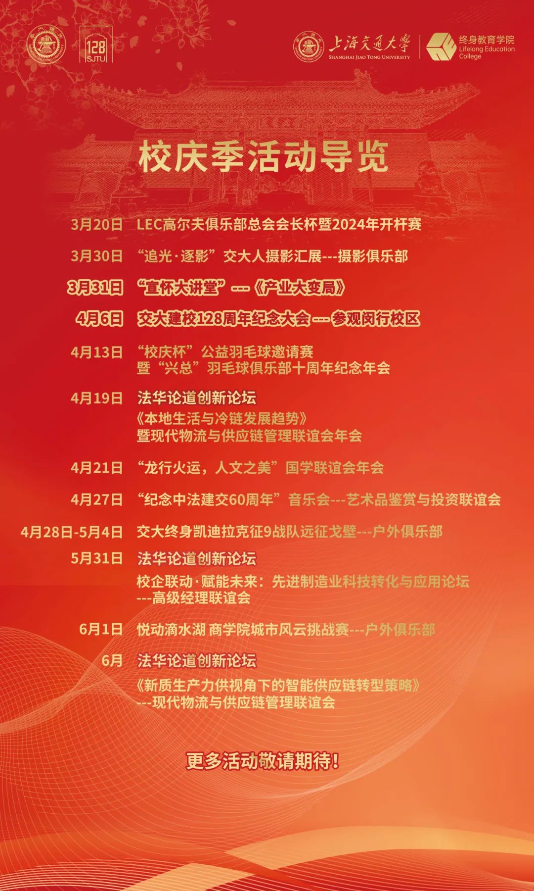 让我们重逢于芳菲缤纷的交大长宁校园,共赴交大人每年一度的盛会!