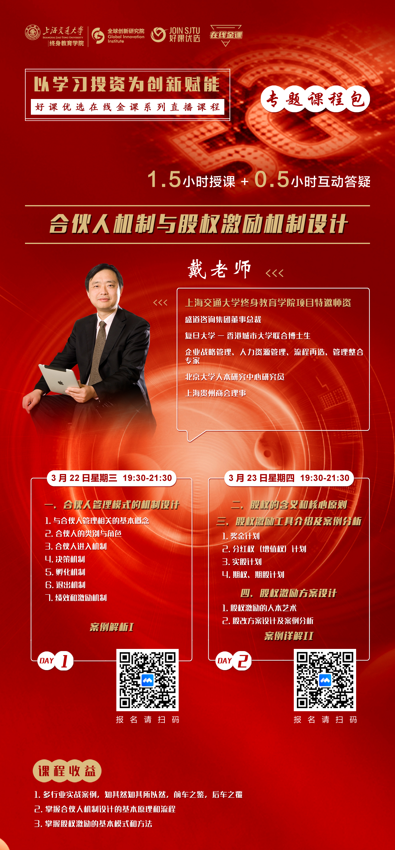 当前位置:首页>学院概况>学院预告>合伙人机制与股权激励机制设计(一)