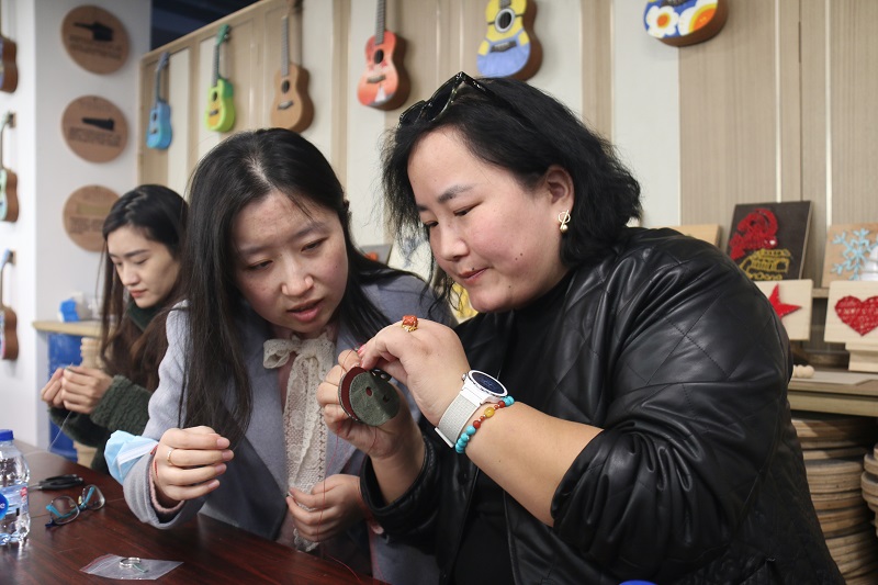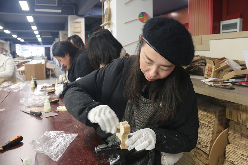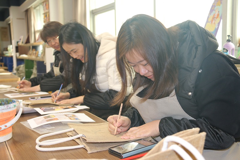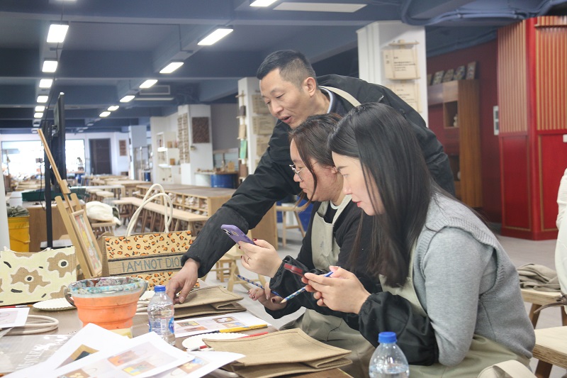 本次活动以非遗文化为载体,精选“皮具”、“木艺手作”、“植物染”、“手绘”四项非遗技艺,特邀非遗传承人现场指导,让学院老师们在经纬交错中感受传统工艺的精妙。活动采用线上教学与线下体验相结合的形式,同步开启线上直播,使没能来现场的老师们也能够参与,实现“云端共赏非遗美”。活动精心设计分组协作环节,以手作为纽带促进跨部门交流。从材料分配到作品共创,老师们在协作中增进默契,现场欢声笑语不断。活动全程配备专业摄影师,为每位老师定格手作瞬间。活动最后,大家手持作品合影留念,记录下这份专属节日的温暖记忆。