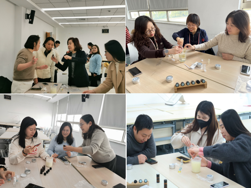 来自设计学院的主讲人吴亚妮博士以深厚的药理学专业功底和丰富的芳疗研究经验,为老师们带来了一场干货满满的分享,从植物香气的奥秘探寻到“科学芳疗”的理念解读,从精油对身心的科学作用机制到日常生活中的实证应用,吴博士用通俗易懂的语言结合多项前沿科研成果,让大家深刻认识到芳香疗法的科学性与实用性。老师们在舒缓的香气中感受着自然之力带来的深层放松与心灵疗愈。