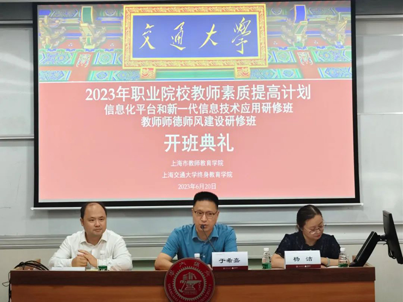 2022年12月,教育部办公厅公布了《关于公布国家级职业教育“双师型”教师培训基地(2023-2025 年)的通知》(教师厅函〔2022〕28 号),上海交大成功入选国家级职业教育“双师型”教师培训基地(电子与信息大类计算机类)。近日,由上海市教师教育学院(上海市教育委员会教学研究室)主办、开云kaiyun官方网站承办的2023年上海市职业院校教师素质提高计划国家级培训项目“师德师风培训(职业院校教师师德师风建设研修班)”(以下简称“师德师风培训”)和“信息技术应用能力提升(信息化平台和新一代信息技术的应用研修班)”(以下简称“信息化培训”)顺利完成。