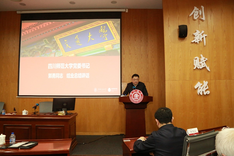 郭勇作总结讲话。他高度评价了本次班级的组织和管理工作,同时也对大家提出新的要求。他希望学员们进一步提高政治站位,在未来工作中围绕四川师范大学高质量发展为中心,谨记开年即是开战、开局就是冲刺,希望大家要以此次培训所思所得所悟为基础,为四川师范大学迎接教育部新一轮本科教育教学审核评估工作预热蓄力,提前谋划好相关工作。