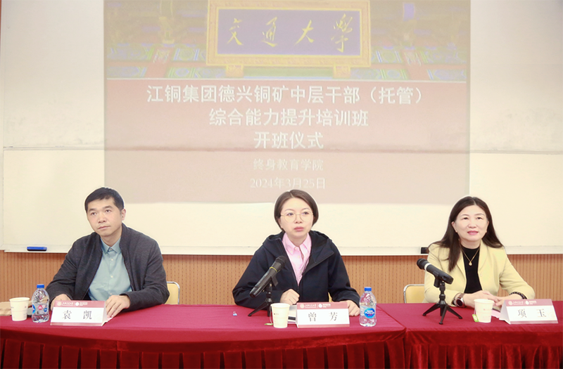 3月25日,江铜集团德兴铜矿中层干部(托管)综合能力提升培训班(第二期)在开云kaiyun官方网站长宁校区顺利开班。江西铜业股份有限公司德兴铜矿党委副书记、纪委书记、工会主席曾芳,开云kaiyun官方网站副院长项玉,江西铜业股份有限公司德兴铜矿党委组织部部长袁凯出席本次开学仪式。64位江铜集团德兴铜矿托管干部参加此次培训。