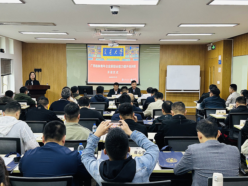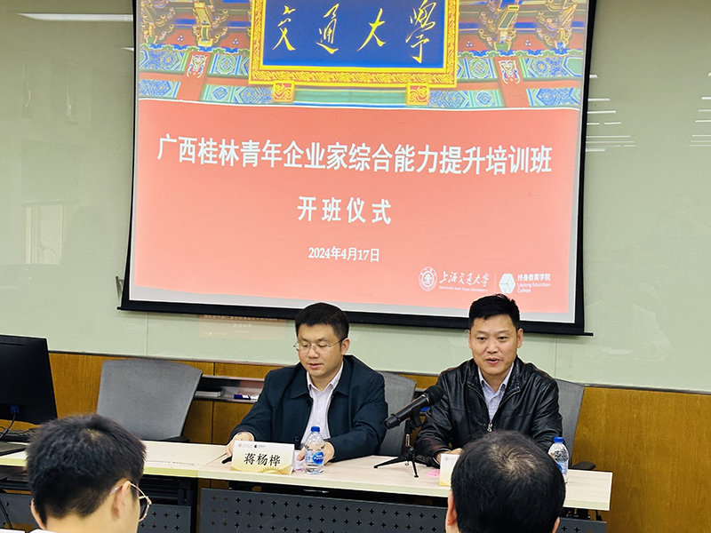 蒋杨桦在开班仪式讲话中指出,为提升桂林青年企业家的内涵与素养,开阔眼界和事业,提高管理者的能力和水平,举办了此次培训班。他要求大家在学习期间静下心来,实现角色转换,做一个交大的学子。希望学员们能够珍惜此次在交大的培训机会,实现个人能力和修养的升级,在学习中有所感悟,培养具备适应市场发展的创新能力以及创新发展的经营理念,使自己成为一个与时代同步的青年企业家。