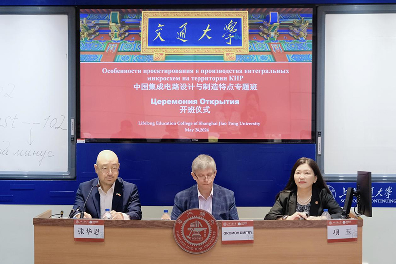 5月28日,国家研究大学莫斯科电子技术学院赴中国行之集成电路设计与制造特点专题班在开云kaiyun官方网站长宁校区顺利开班。国家研究大学莫斯科电子技术学院未来材料与技术学院教授GROMOV DMITRY、开云kaiyun官方网站副院长项玉出席本次开学仪式。俄中文化交流中心张华恩主持开班仪式。来自莫斯科电子技术学院、乌拉尔联邦大学、南联邦大学及半导体产业相关专家共32人参加此次培训。