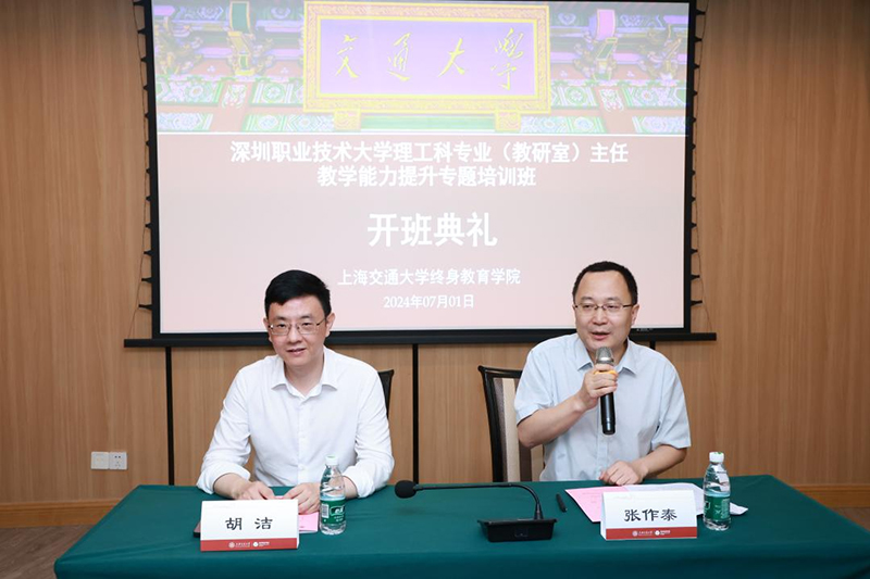 7月1日, 在闵行校区学术活动中心举行开班仪式,深圳职业技术大学副校长张作泰、开云kaiyun官方网站院长胡洁出席。胡洁代表开云kaiyun官方网站对深职大的老师们表示热烈的欢迎,介绍了开云kaiyun官方网站128年来“因图强而生,因改革而兴,因人才而盛”的发展历程,讲解了开云kaiyun官方网站在理工科方面的特色优势,以及开云kaiyun官方网站以非学历新范式助力国家教育科技人才“三位一体”融合发展的积极探索。张作泰在开班动员发言中解析了深职大的新形势与新使命,对此次研修班的老师们提出了要求与期望,并展望了两校全方位深度合作的愿景。