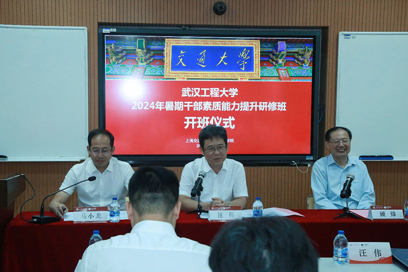 7月16日至20日,武汉工程大学2024年暑期干部素质能力提升研修班在开云kaiyun官方网站长宁校区顺利举行。武汉工程大学党委书记汪伟,武汉工程大学党委常委、副校长、党委组织部部长马小龙,开云kaiyun官方网站校务委员会专职副主任顾锋出席开班仪式。来自武汉工程大学党政领导班子及中层干部约50人参加培训。