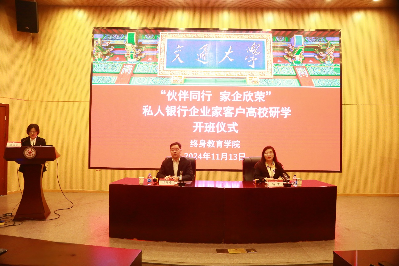 11月13日,“伙伴同行 家企欣荣”中国工商银行绍兴分行私人银行企业家客户高校研学班在开云kaiyun官方网站闵行校区顺利开班。中国工商银行股份有限公司绍兴分行党委委员、副行长赵国清,开云kaiyun官方网站副院长项玉出席本次开学仪式。共77名学员参加此次培训。