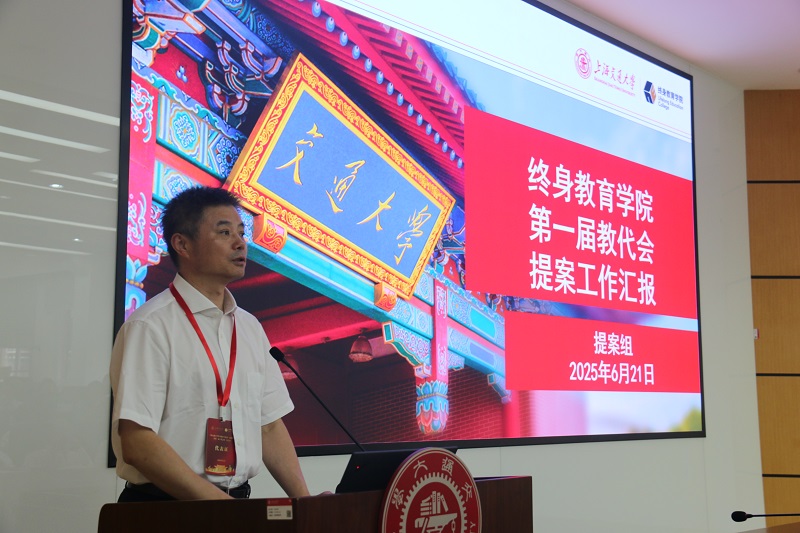 提案组组长高天峰作《终身教育学院第一届教代会提案工作汇报》。此次教代会共收到7份提案,他也就提案理由和整改建议对大会作了报告。