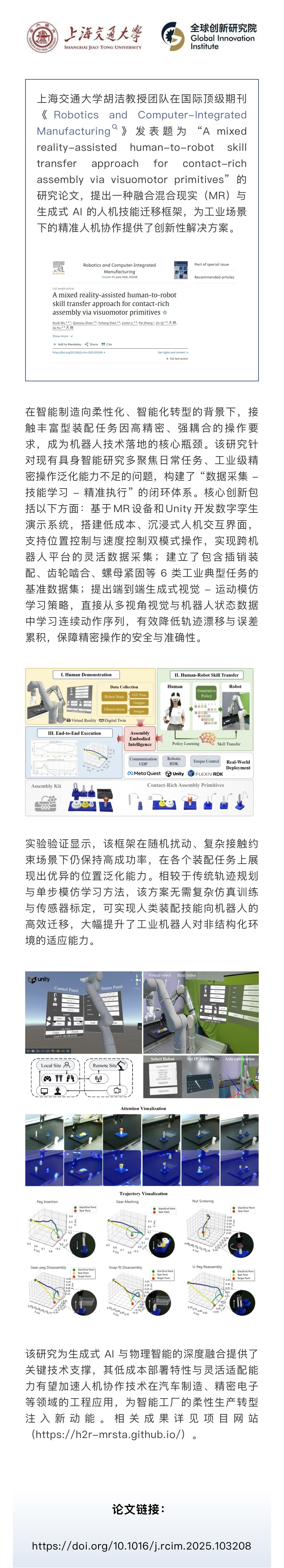 开云kaiyun官方网站胡洁团队在领域顶刊发表论文:面向具身智能的混合现实辅助人机技能迁移方法