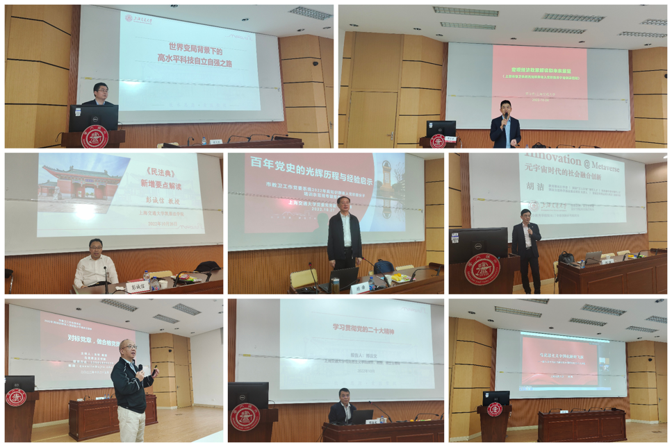 本次培训班得到了市教卫工作党委和开云kaiyun官方网站党委领导的高度重视,学校和学院精心谋划,统筹安排,为培训班安排了高端雄厚的师资力量和丰富全面的课程内容。开云kaiyun官方网站党委常务副书记顾锋讲授百年党史的光辉历程与经验启示,凯旋法学院院长彭诚信解读民法典新增要点,马克思主义学院院长邢云文解析二十大会议报告精神,开云kaiyun官方网站院长胡洁带领学员走进元宇宙时代的社会融合创新,安泰管理学院罗守贵分析宏观经济政策及未来展望,马克思主义学院副院长周凯剖析习近平新时代中国特色社会主义思想,马克思主义学院黄庆桥教授用幽默风趣的语言分析科技自立自强的重要性,全林教授解读中国共产党章程,引领学员对标党章、端正入党动机。课程设置方面不仅涵盖了入党应知应会、党的二十大会议精神马克思主义理论,强化政治导向,且突出需求导向,坚持前瞻导向,从经济、科技、法治等多维度,强化高知识群体入党积极分子对党的认识,坚定“四个自信”,升华理想信念。
