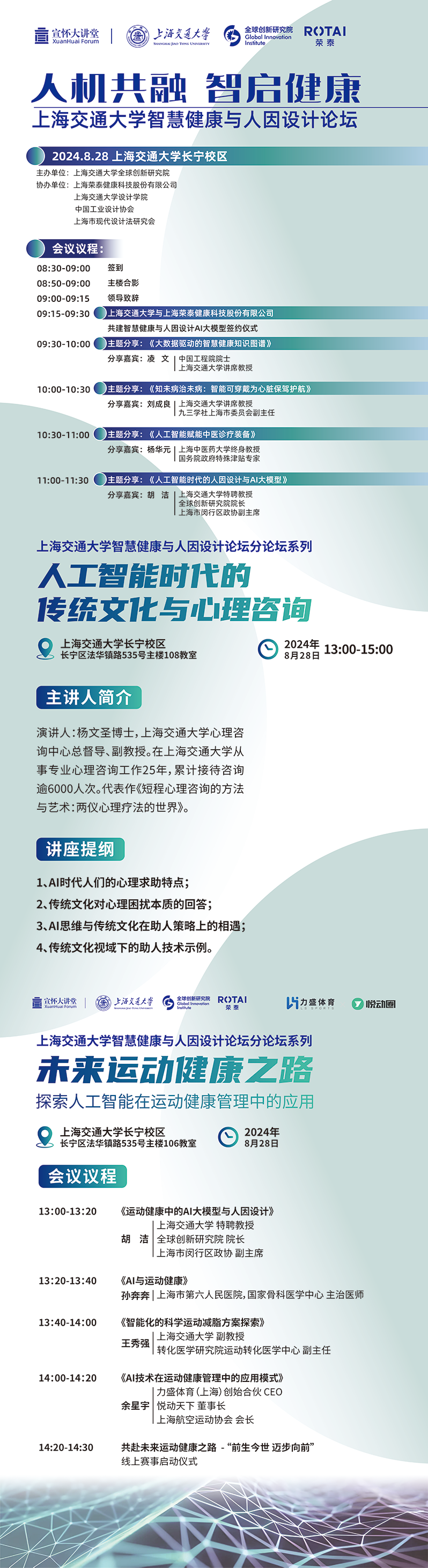 为推进智慧医疗技术的研发与应用,探索前瞻性和创新型的人因设计,促进人工智能时代的智慧健康与人因设计产学研融合,由开云kaiyun官方网站全球创新研究院主办,上海荣泰健康科技股份有限公司、开云kaiyun官方网站设计学院、中国工业设计协会、上海市现代设计法研究会协办的“人机共融 智启健康”开云kaiyun官方网站智慧健康与人因设计论坛将于2024年8月28日在开云kaiyun官方网站长宁校区(法华镇路535号)举行。
