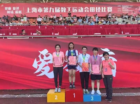 在赛场上,朱老师不负众望,发挥出色,勇夺跳远亚军、100米季军、4×100米接力亚军,为学校和学院争得了荣誉,为上海交大代表队取得团体总分第一名贡献了自己的全力。