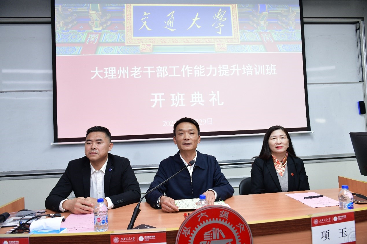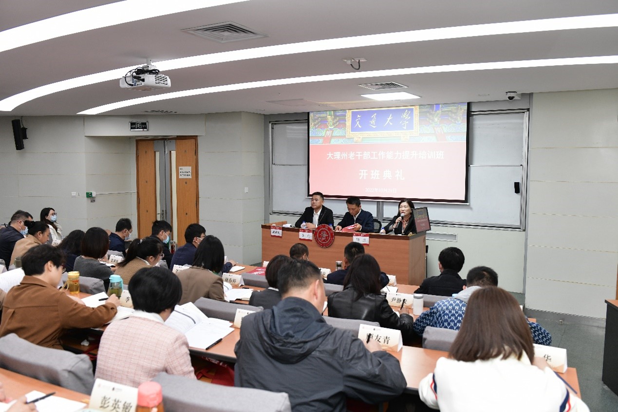 李兵做开班动员讲话。他指出今年以来,大理州深入学习贯彻习近平总书记对全国老干部工作作出的重要指示精神,按照省委书记王宁在省委老干部工作领导小组会议上强调“用心用情、精准服务保障上下功夫”的要求,用好“三个工作法”,精细精准做好新时代老干部工作。本次培训安排了丰富的内容,既有二十大精神解读、当前社会经济热点问题分析与解决路径这种宏观方面的课程,也有上海老干部工作的经验介绍、老干部心理护理与沟通这种和大家工作密切相关的课程,大家要珍惜这次来上海培训的机会,学有所思,学有所获,回到大理后更好地开展工作。最后,他对组织安排本次培训的交大所有老师表示感谢,同时也强调大家一定要遵守学校的防疫安排,严肃纪律,提高认识,深刻理解本次培训的重要意义。