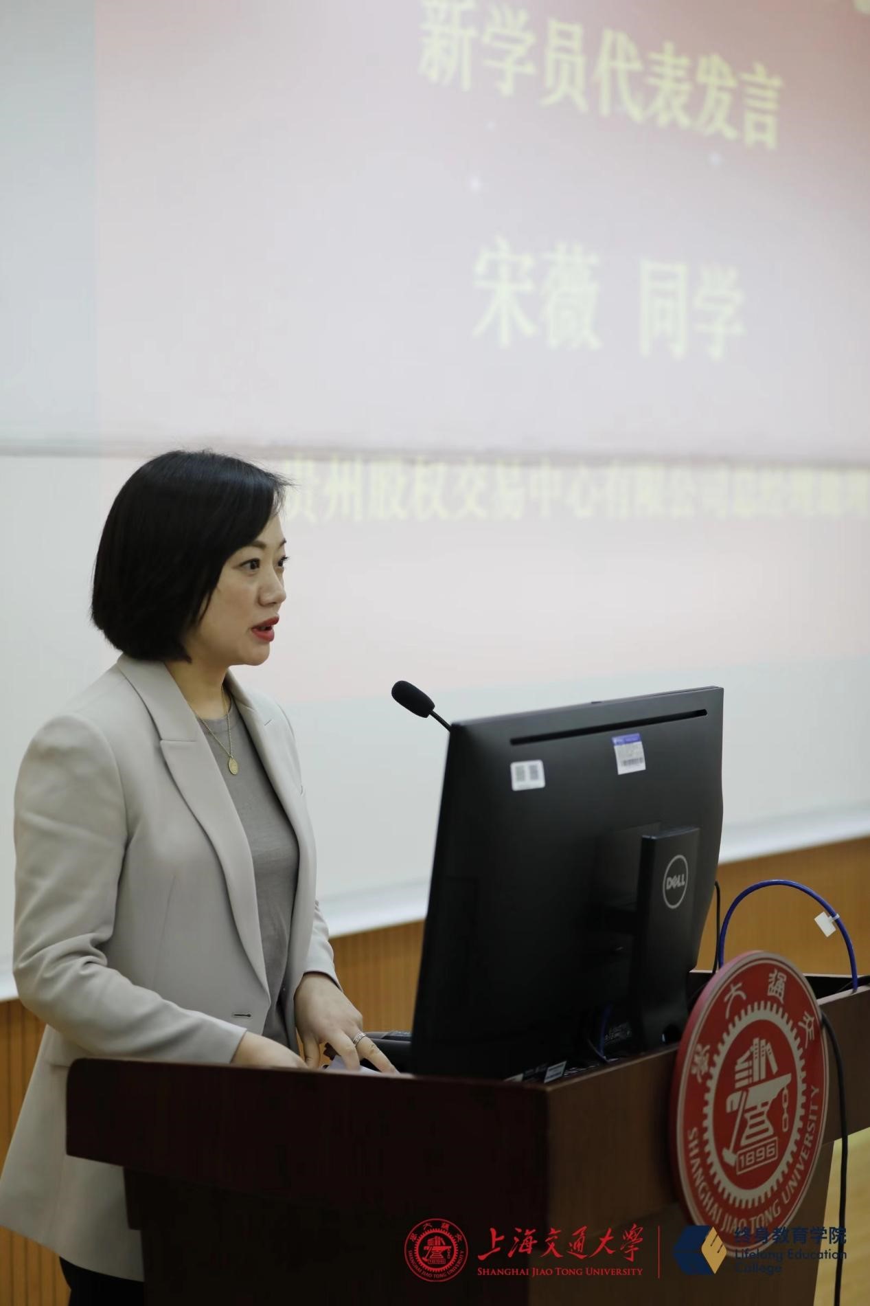 贵州股权交易中心有限公司总经理助理宋薇作为新学员代表发言。她表示一直以来,省委、省政府高度重视资本市场对中小微企业的服务,贵州股交中心作为省地方人民政府扶持中小微企业政策措施的综合运用平台,在服务中小企业的过程中,更深刻地感受到中小企业在发展和融资过程中的痛与难,希望藉由这次的研修与学习,加深理解中小企业的经营管理思路,熟悉行业前沿经济动态,强化与各行业优秀企业交流,切实厘清省内中小企业发展之需求,深化对中小企业的服务,陪伴省内中小企业共同成长。