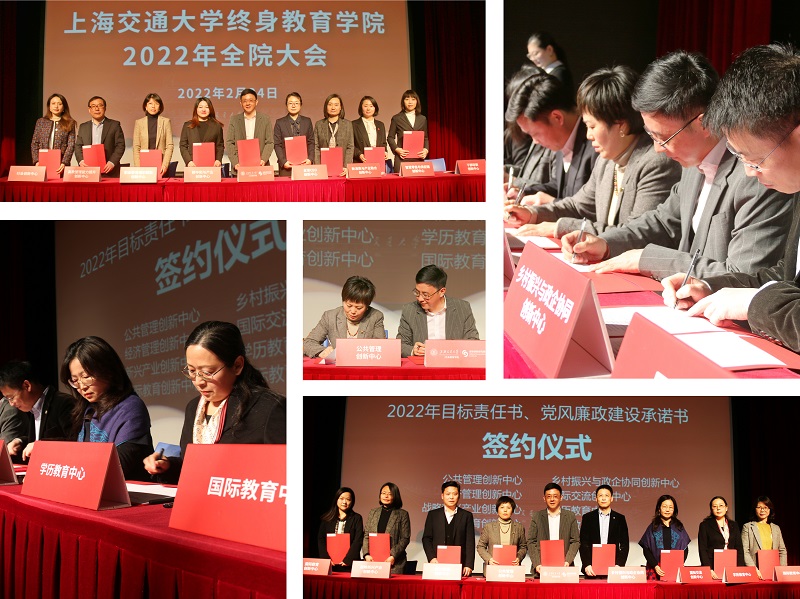 学院业务中心主任上台签署2022年目标责任书和党风廉政建设承诺书。