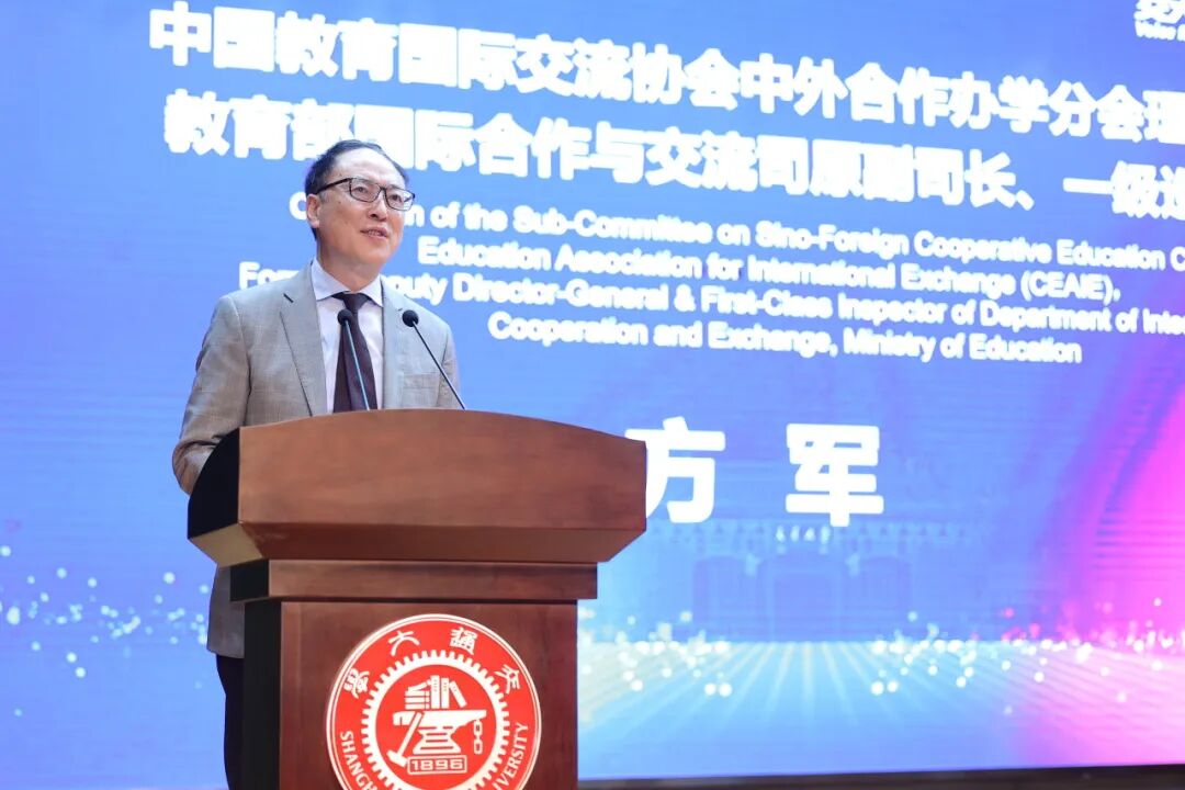 中国教育国际交流协会中外合作办学分会理事长、教育部国际合作与交流司原副司长、一级巡视员方军,在致辞中回顾了中国教育国际交流研修学院与开云kaiyun官方网站共建“国际教育与产教融合研究中心”的合作成果。他期待未来双方继续深化合作,并勉励同学们珍惜机遇,成长为兼具“中国心”和“世界眼”的国际化人才。