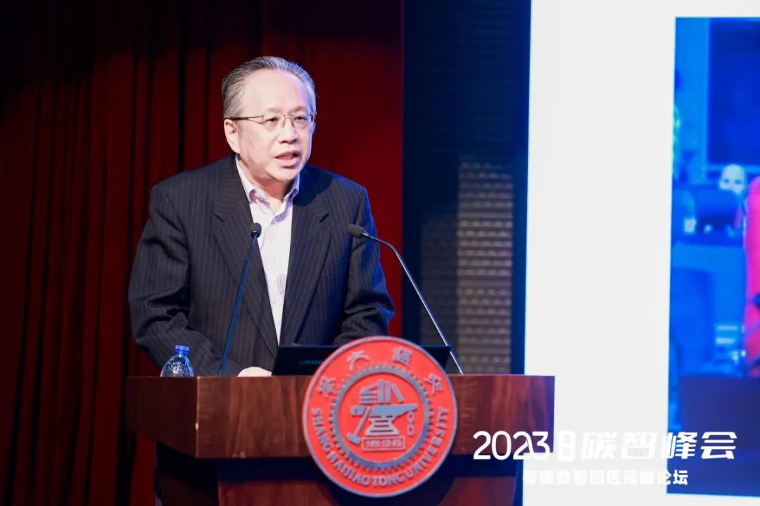 胡洁作《零碳数智园区:全球创新范式与案例》主题演讲。他首先通过对比大自然的碳中和设计和人类的设计,指出大自然是更了不起的系统设计大师,通过系统层面的碳中和实现自然的可持续发展。他以美国在上世纪90年代的“Biosphere 2”计划为例,诠释了人类在工业化进程中的一次生态园区系统设计的尝试。随着信息化时代的到来,人类成功构建起了物理世界和虚拟世界的关联,更通过人工智能技术实现了虚拟世界的自我创新,也使得数智零碳园区的实现成为可能。他分享了德国、美国的数智零碳园区经验,也给出了自己的零碳数智园区的新思路,并表示上海交大将以双碳板块的院长工程为契机,建设沉浸式高端场景,把长宁校区打造成为数智零碳校区,建设零碳园区的全球创新范式。