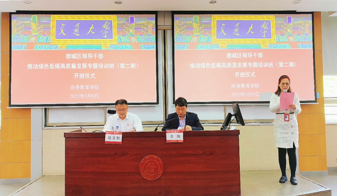 5月8日,德城区干部推动绿色低碳高质量发展专题培训班(第二期)在开云kaiyun官方网站长宁校区开班。山东省德州市德城区委副书记赵文彬、开云kaiyun官方网站干部培训创新中心副主任余海出席本次开学典礼。德城区县级干部和各单位主要负责同志共42人参加此次培训。