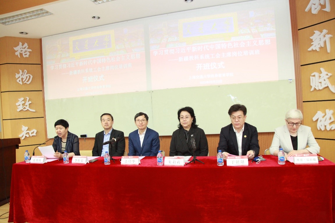 5月22日,学习贯彻习近平新时代中国特色社会主义思想——新疆教科系统工会主席岗位培训班在开云kaiyun官方网站顺利举行。新疆维吾尔自治区总工会党组成员、教育工会主席朱莉莉,上海市教育工会副主席吉启华,上海市教育工会兼职副主席、开云kaiyun官方网站教育工会主席于朝阳,新疆维吾尔自治区教育工会兼职副主席、伊犁州教育工会主席张秀鸿,新疆工程学院党委常委、副校长库蓝•巴拉题,开云kaiyun官方网站党委书记李昕荣参加此次开班仪式。共有百名来自新疆维吾尔自治区教科系统的工会主席参加此次培训。