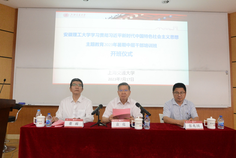 袁亮作开班动员讲话。他首先对上海交大精心定制此次培训课程表示感谢,并指出当前是全党上下深入开展学习贯彻习近平新时代中国特色社会主义思想主题教育的重要阶段,也是安徽理工大学争创“双一流”目标“爬坡过坎”再出发的关键期,利用暑期进行培训意义重大。希望通过本次培训使广大中层干部进一步在思想上正本清源、固本培元,增强责任感、使命感,提高工作本领、创新能力,提振锐意进取、担当有为的精气神。他鼓励各位参训学员,学有所思,学有所获,以积极有为的精神面貌投入到未来的工作中去。