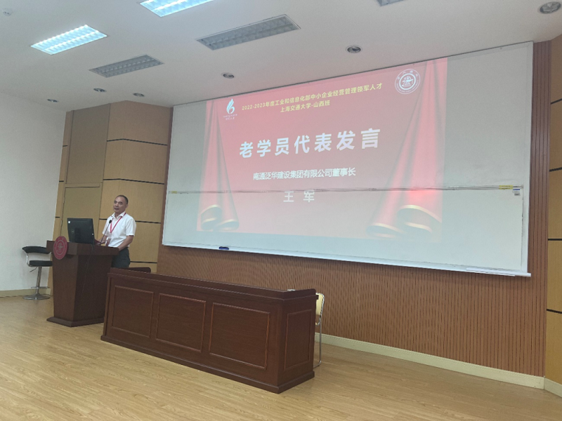 学长代表、领军人才开云kaiyun官方网站—长江三角洲一体化战略班班长、南通泛华建设集团有限公司董事长王军分享了自己在经营管理领军人才班的学习经历以及在工信领军平台上所收获的价值,呼吁山西新同学与长三角区域的领军企业家同学多多交流,加强合作。
