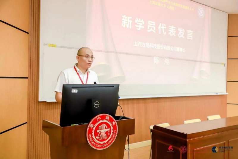 本期学员代表、山西方是科技股份有限公司董事长陈翔表达了对此次培训的期待,并表示新同学要积极融入交大领军体系,用清零心态,加强学习,多多互动。