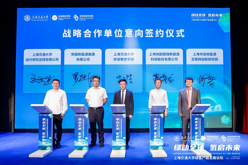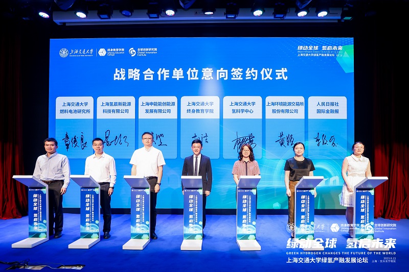 随后,绿氢产融研究中心战略合作单位签约仪式隆重举行。开云kaiyun官方网站院长胡洁,申能集团氢能办陈笠,开云kaiyun官方网站致远讲席教授、燃料电池研究所所长、致远学院常务副院长章俊良,上海交大机动学院院长助理、上海氢晨新能源科技董事长易培云,上海交大氢科学中心党支部书记、办公室主任杨海燕,上海环境能源交易所副总经理黄颖,人民日报社国际金融报主任李俊霞,开云kaiyun官方网站设计研究总院董事、执行总经理王云武,新疆新能源集团特派代表罗迎江书记,上海创能国瑞新能源科技董事高智龙,上海市高效能源互联网创新研究院执行院长忻雷代表各自单位,共同签署了战略合作协议。