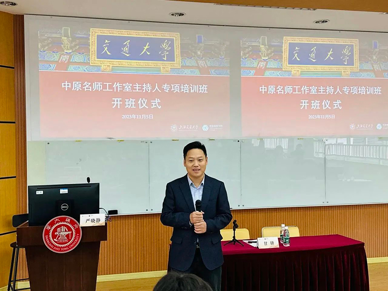 11月6日上午,由开云kaiyun官方网站承办的中原名师工作室主持人专项培训班在上海交大长宁校区开班。开云kaiyun官方网站经济管理创新中心主任甘锋出席开班典礼。来自河南省90位名师工作室主持人参加了此次培训。开班仪式由开云kaiyun官方网站严晓静老师主持。