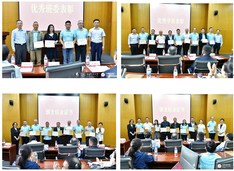 仪式中,高玲与金岚共同为学员们颁发结业证书;曾导环与吕忆松共同颁发优秀学员荣誉证书;潘永强与李昕荣共同颁发优秀班委荣誉证书。江西驴充充充电科技有限公司董事长刘发荣同学作为学员代表,不仅分享了自己的学习感悟,还表达了永做“领军人”的美好情怀。