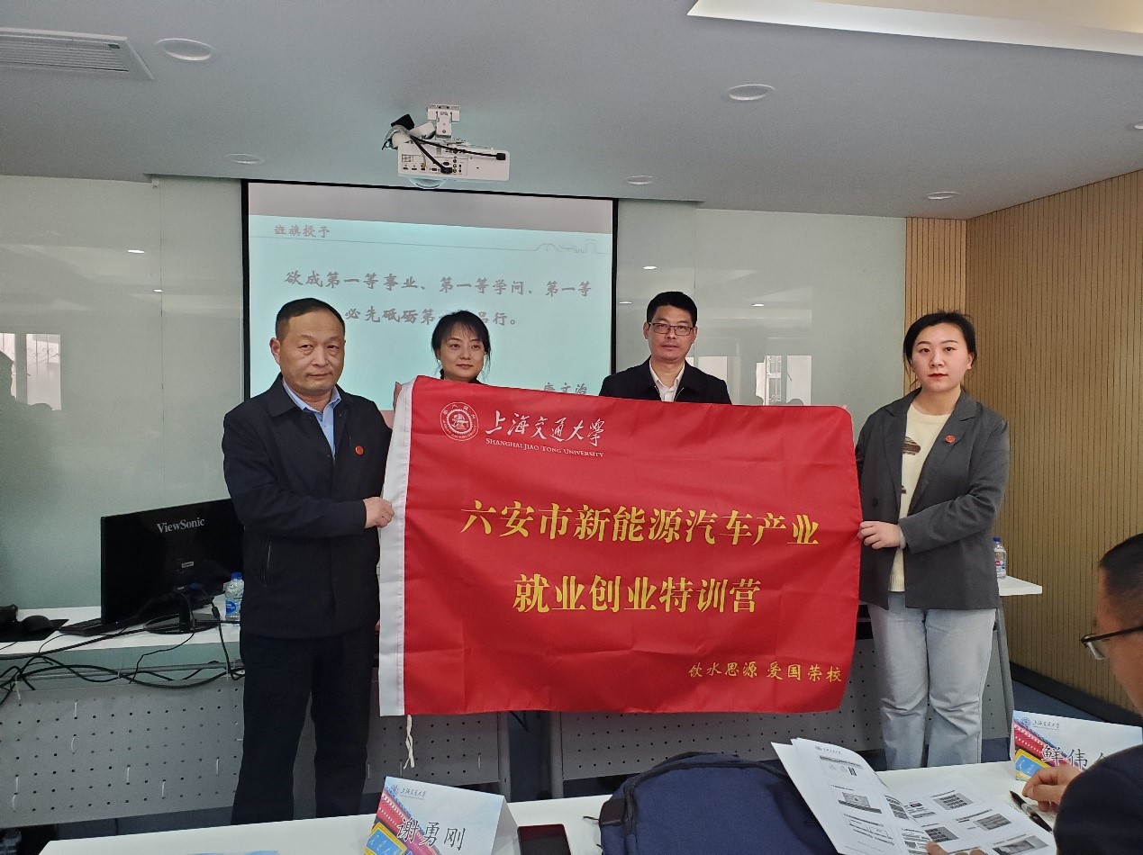 李小天、沈野萤为班级颁发班旗。班旗交接,文化传承,这一份班旗代表的是领导对于同学们的关注与重视,是老师对于同学们的期望与信心。思源致远,接过班旗,即意味着本次六安市新能源汽车产业就业创业特训营正式成立。
